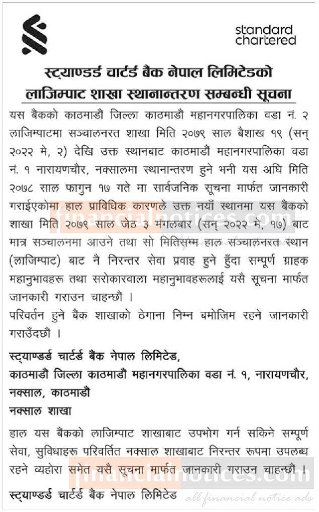 लाजिम्पाट शाखा स्थानान्तरण सम्बन्धी सूचना
