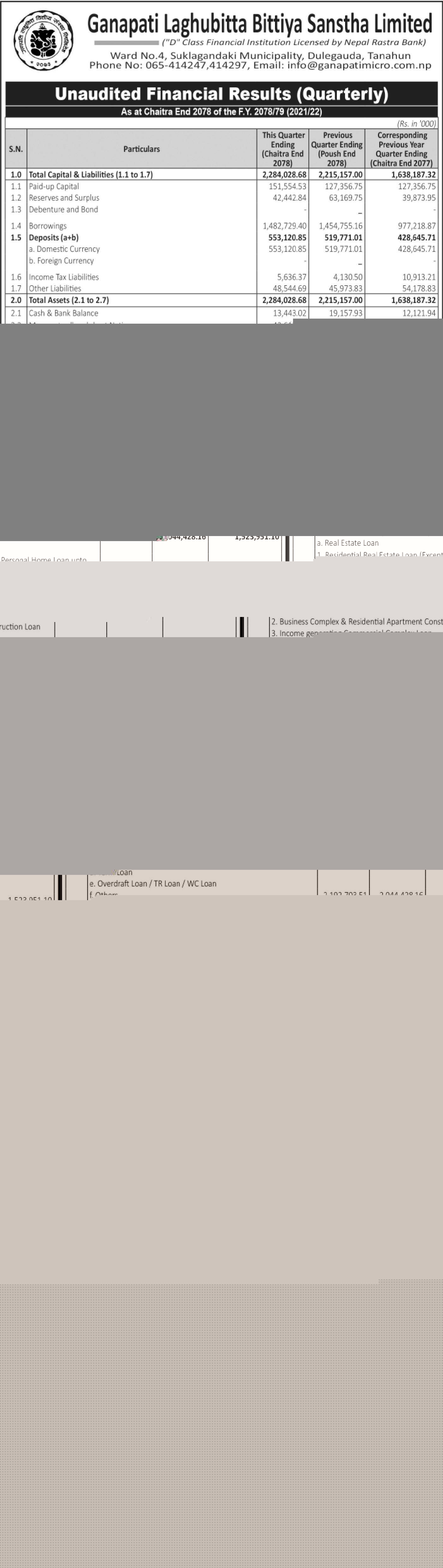 गणपति लघुवित्तको खुद नाफा १ करोड ३१ लाख रुपैयाँ - Quarterly Report -