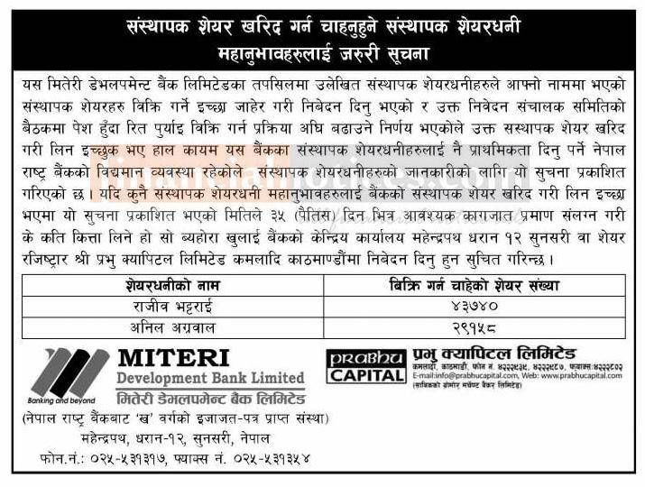 संस्थापक शेयर खरिद गर्न चाहानुहुने संस्थापक शेयरधनीहरुलाई जरुरी सूचना