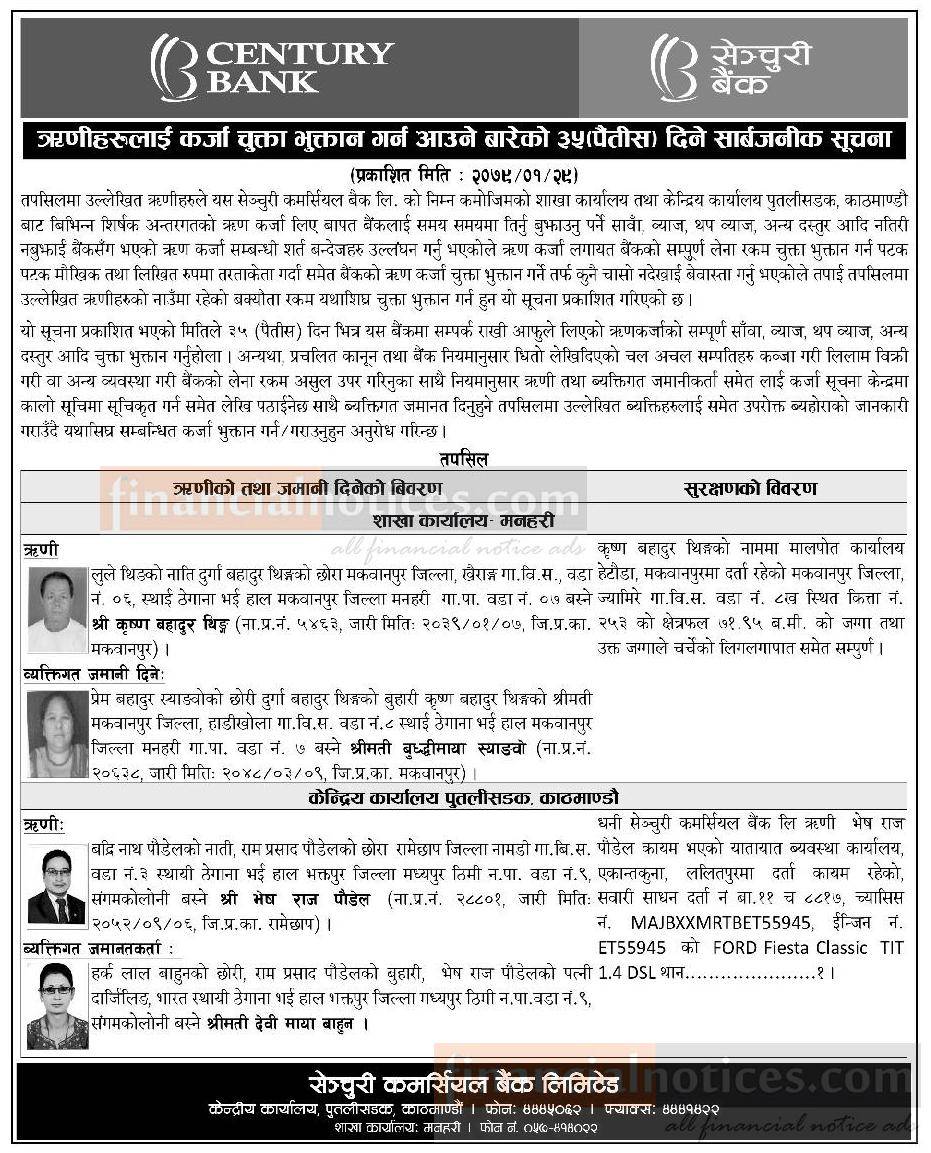 Published by Century Bank Ltd. on 2079-1-29