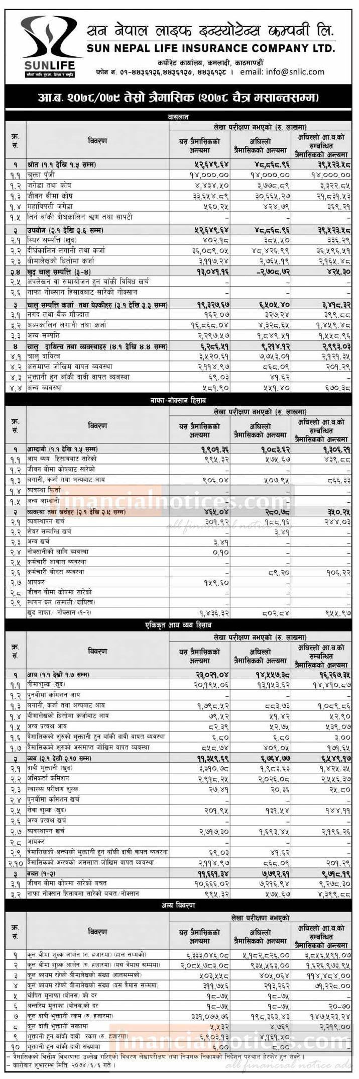 Sun Nepal Life Insurance has posted a net profit of Rs 143.63 million during the 3rd quarter