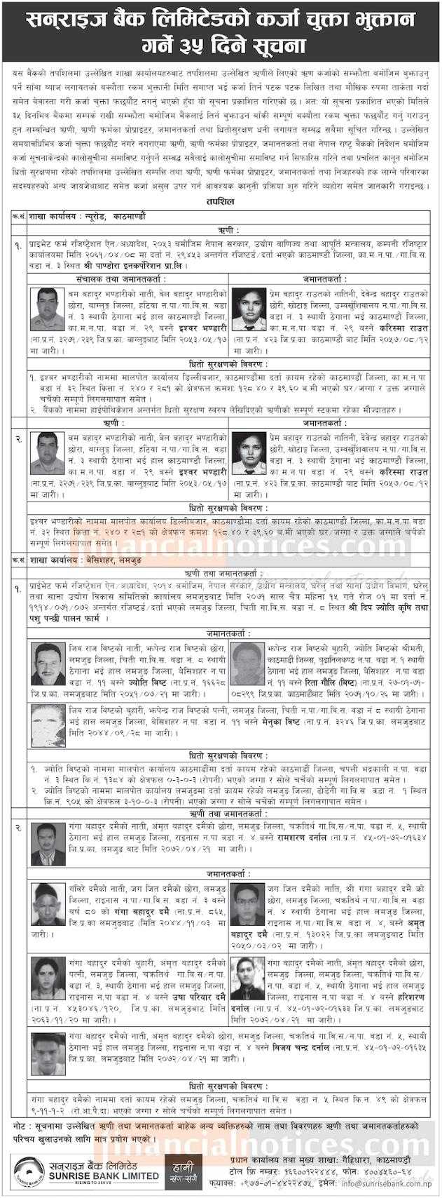 कर्जा चुक्ता भुक्तान गर्ने ३५ दिने सूचना सूचना
