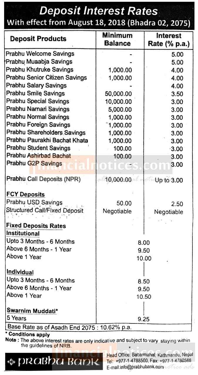 Deposit Interest Rates Notice