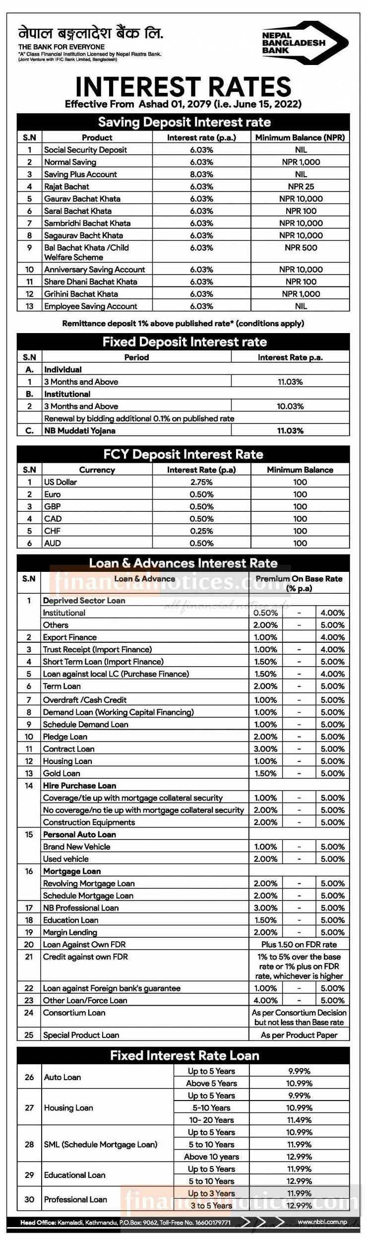 नेपाल बंगलादेश बैंकले सार्वजनिक गर्यो नयाँ ब्याजदर