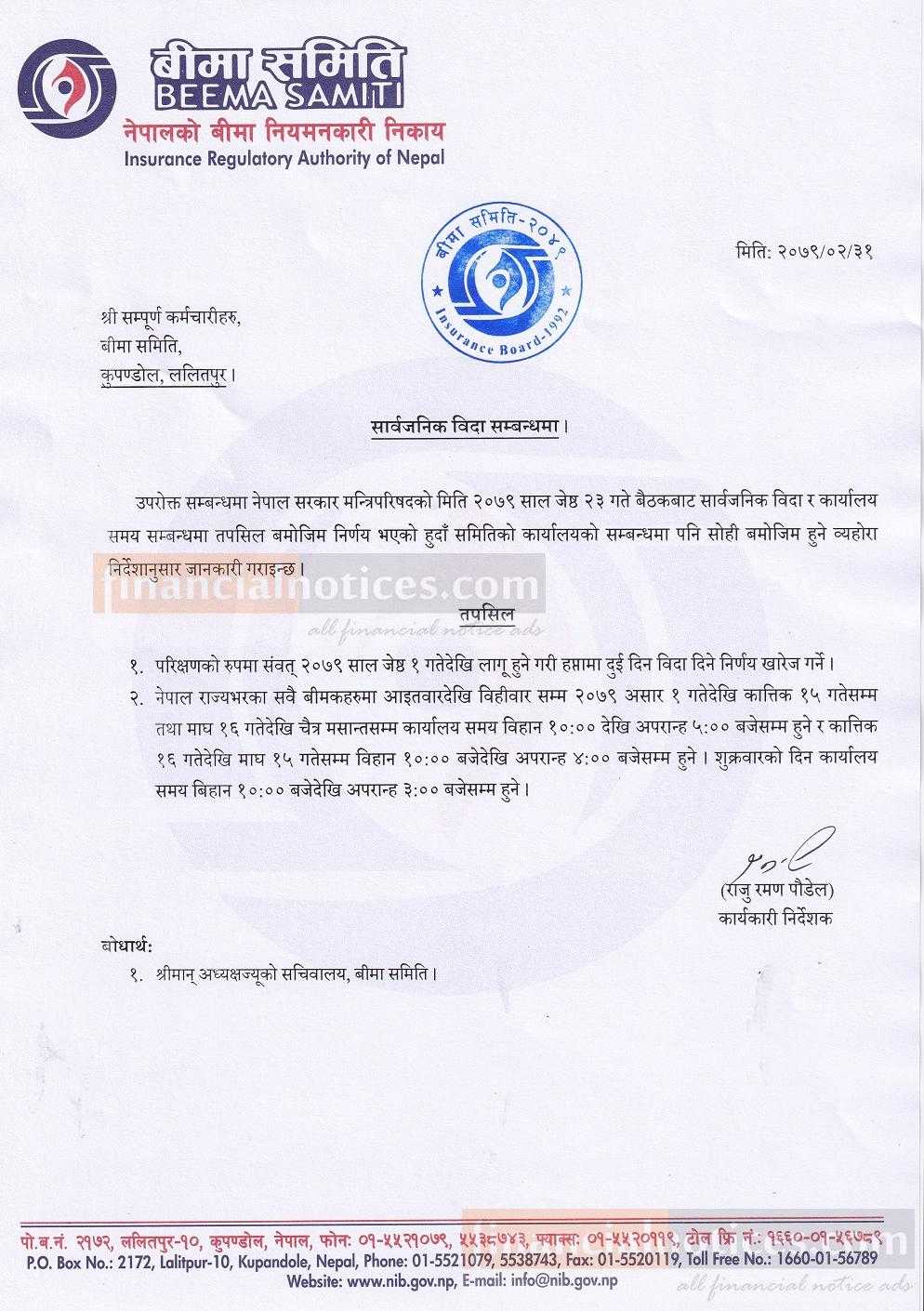 सार्वजनिक विदा सम्बन्धी बीमा समितिको सूचना