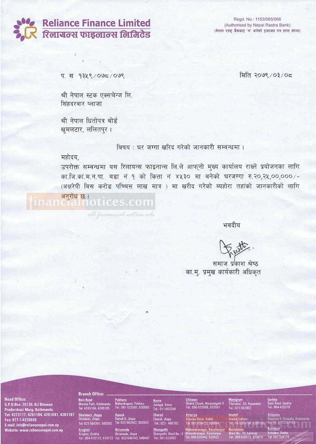 घर जग्गा खरिद गरेको सम्बन्धी सूचना