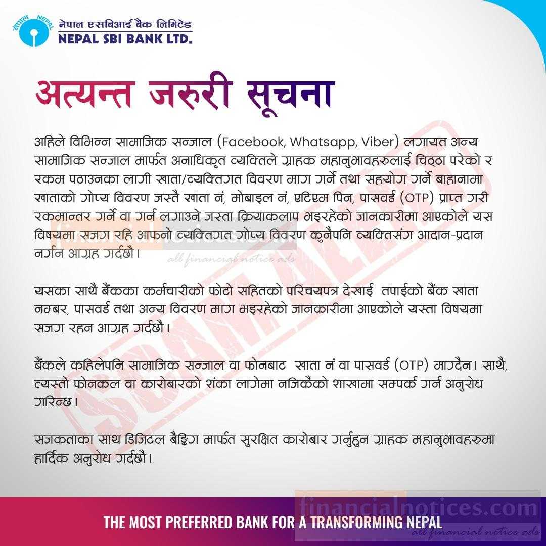 सामाजिक सञ्चालबाट हुने ठगिबाट जोगिन नेपाल एसबीआई बैंकको महत्वपूर्ण सूचना