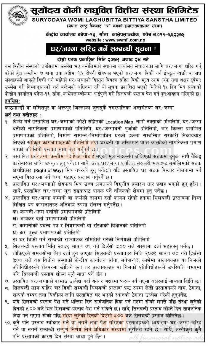घर/जग्गा खरिद गर्ने सम्बन्धी सूचना