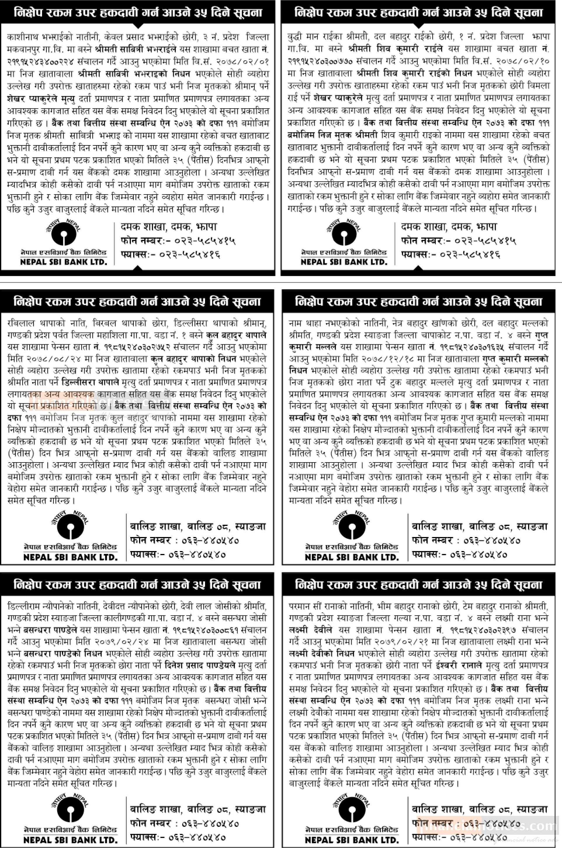 निक्षेप रकम उपर हकदावी गर्न आउने ३५ दिने सूचना
