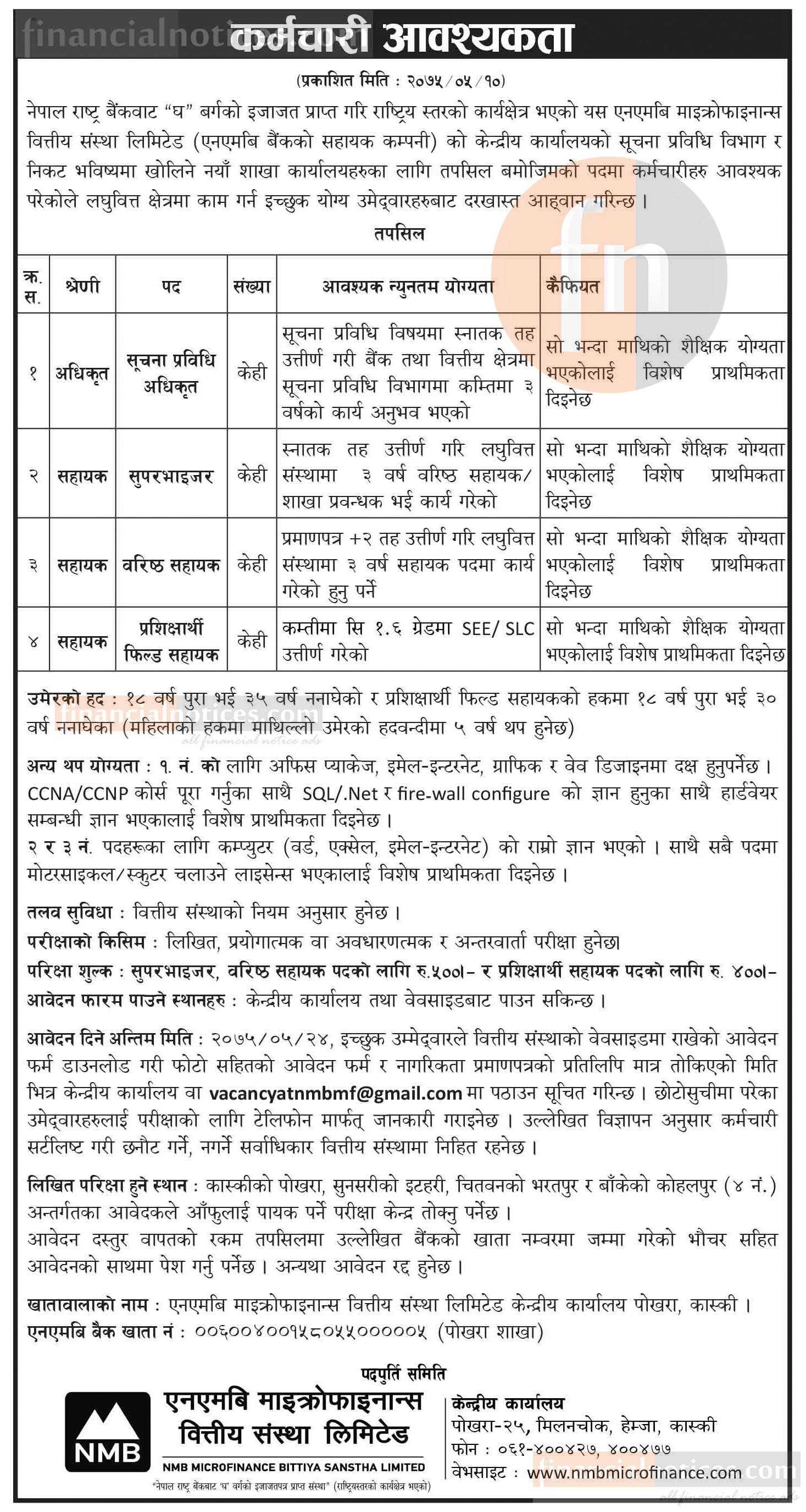 NMB लघुवित्तमा जागिर खुल्यो !!!