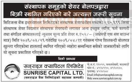 संस्थापक शेयर बिक्री सम्बन्धी कुमारी बैंकको सूचना