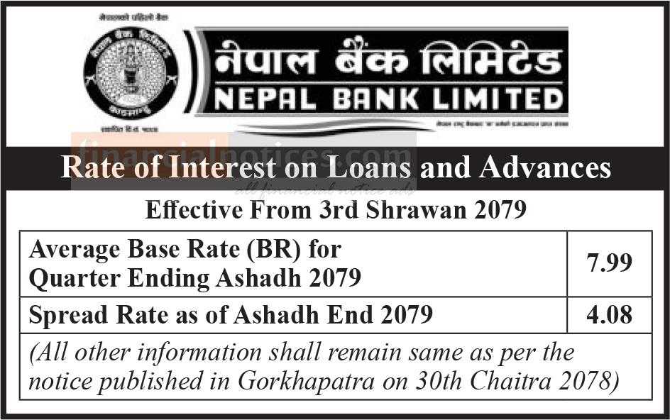 हेर्नुहोस नेपाल बैंकको Rate of Interest on Loans and Advances