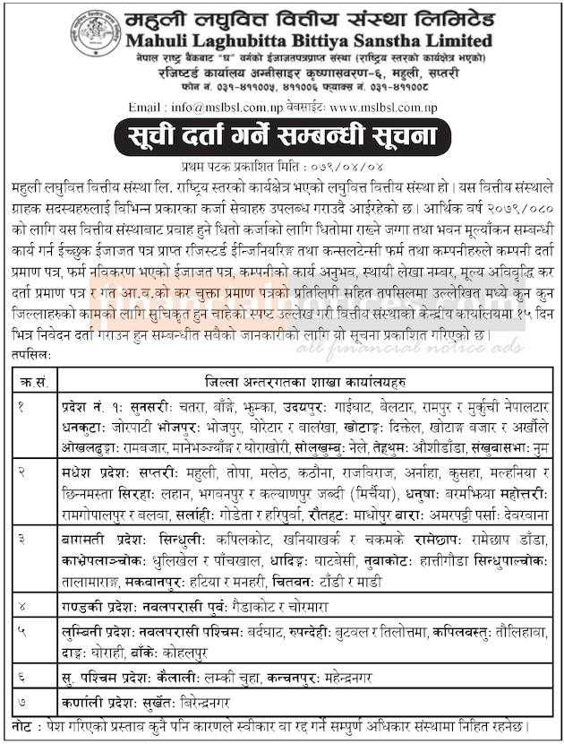 सूची दर्ता गर्ने सम्बन्धी सूचना