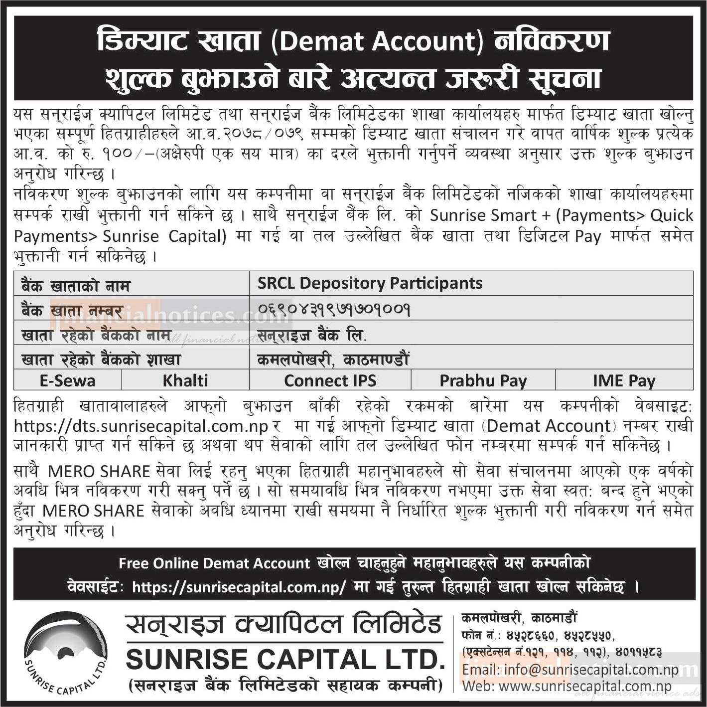 डिम्याट खाता नविकरण शुल्क बुझाउने बारे अत्यन्त जरुरी सूचना