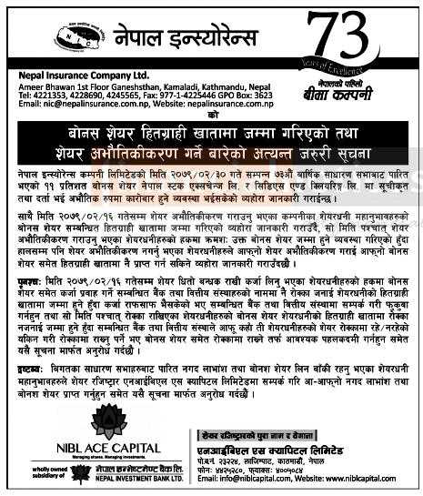 बोनस शेयर हितग्राही खातामा जम्मा गरिएको तथा शेयर अभौतिकीकरण बारे सूचना