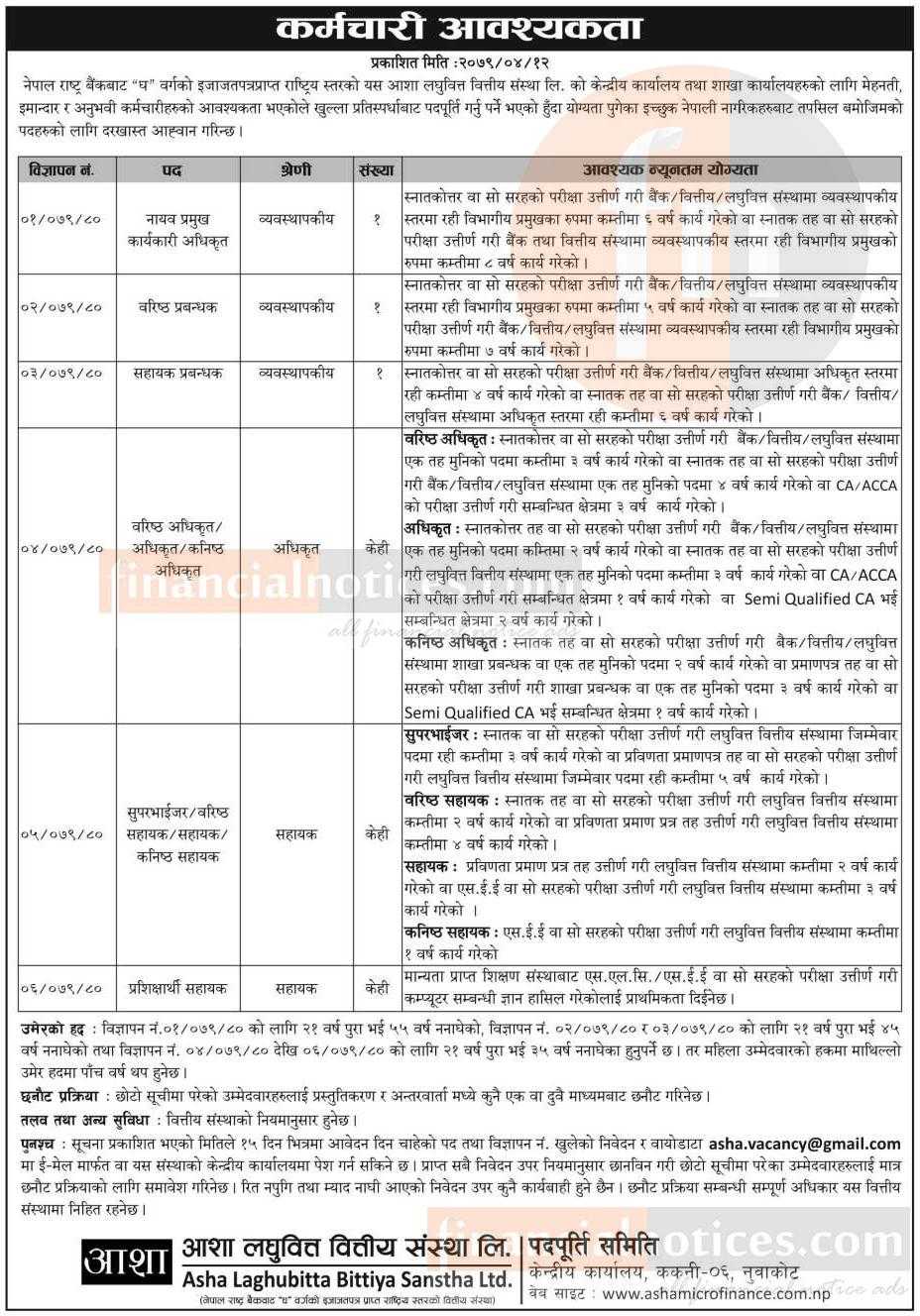 आशा लघुवित्तमा कर्मचारी आवश्यकता