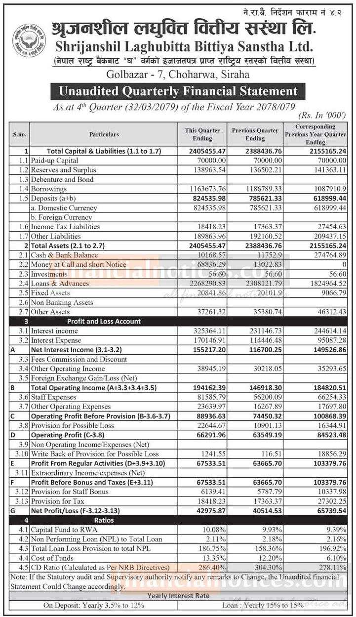 श्रृजनशील लघुवित्तको खुद नाफा ४ करोड २९ लाख रुपैयाँ