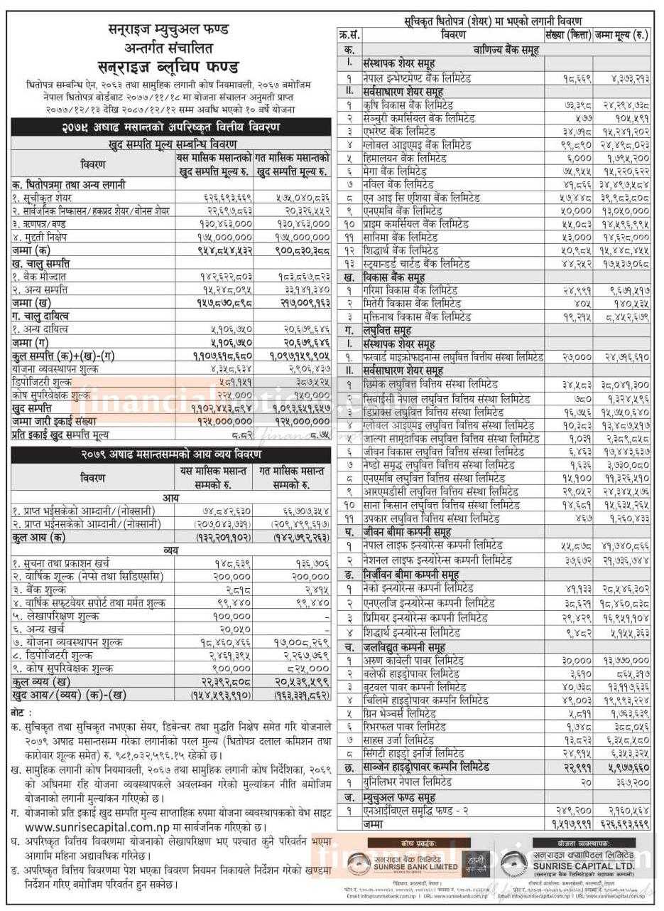 Sunrise Capital has published Sunrise Bluechip Fund Net Assets Value up to Ashadh 2079