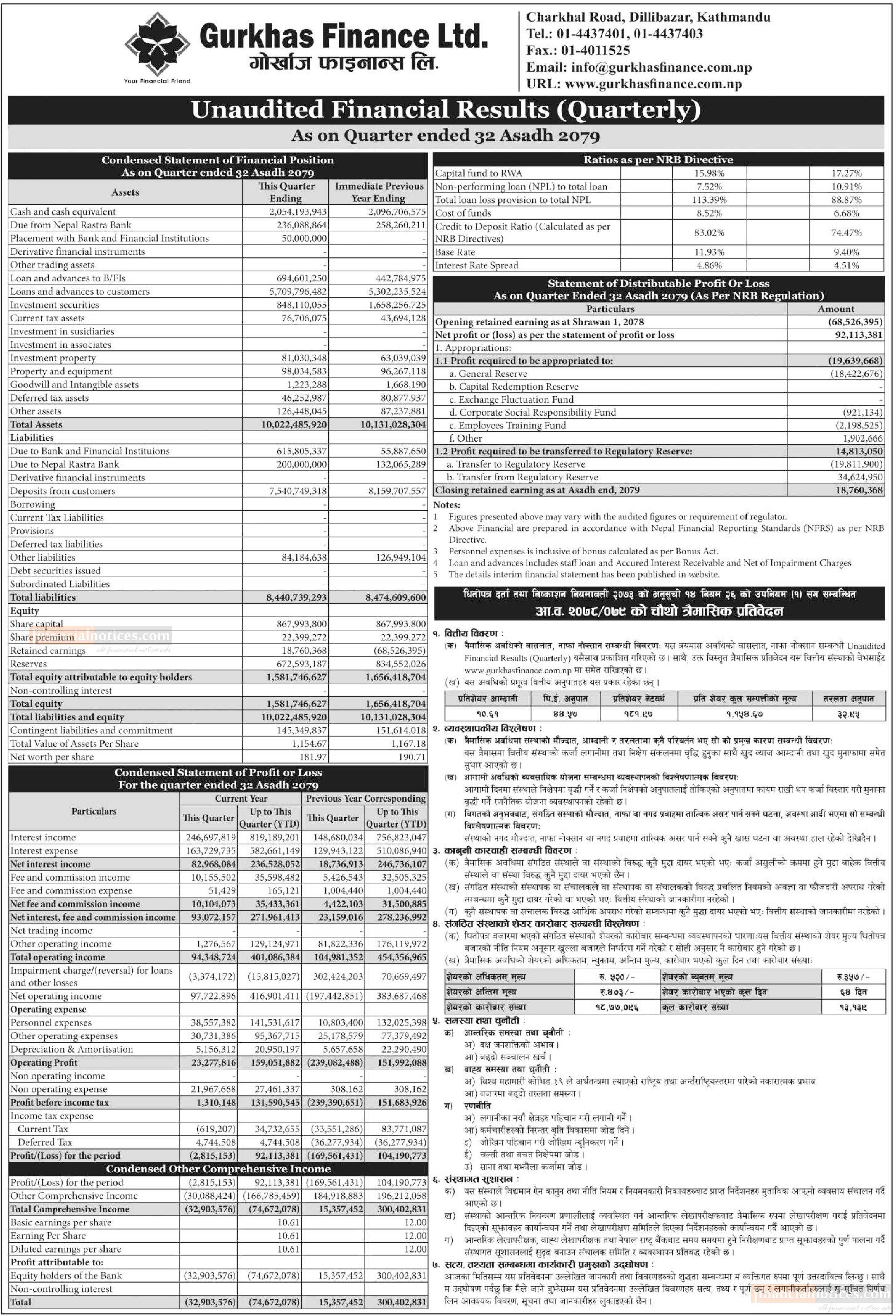 Gurkhas Finance has posted a net profit of Rs 92.11 million during 4th quarter.