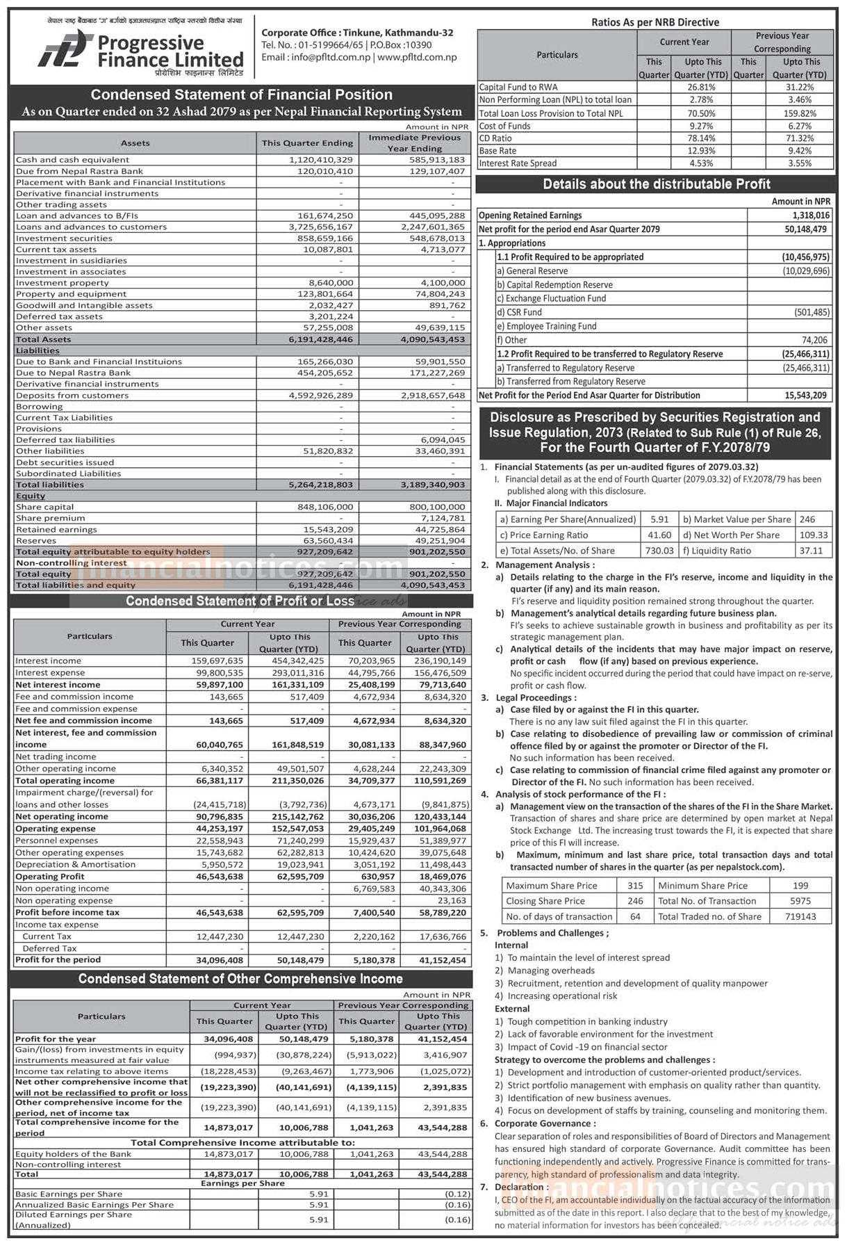 Progressive Finance has posted a net profit of Rs 50.14 million during 4th quarter.