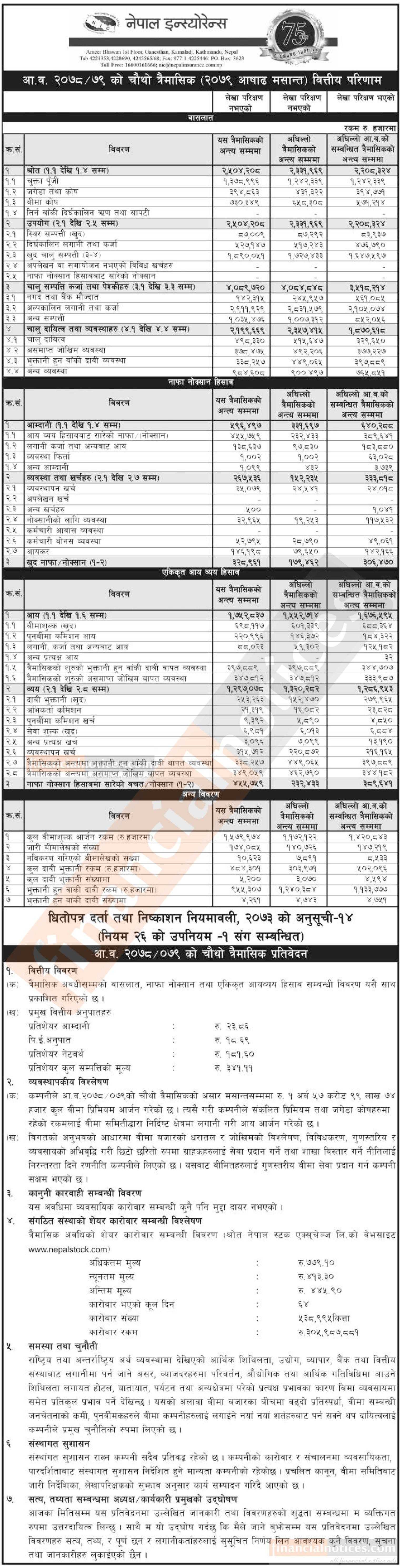 NICL has posted a net profit of Rs 328.96 million during the 4th quarter.