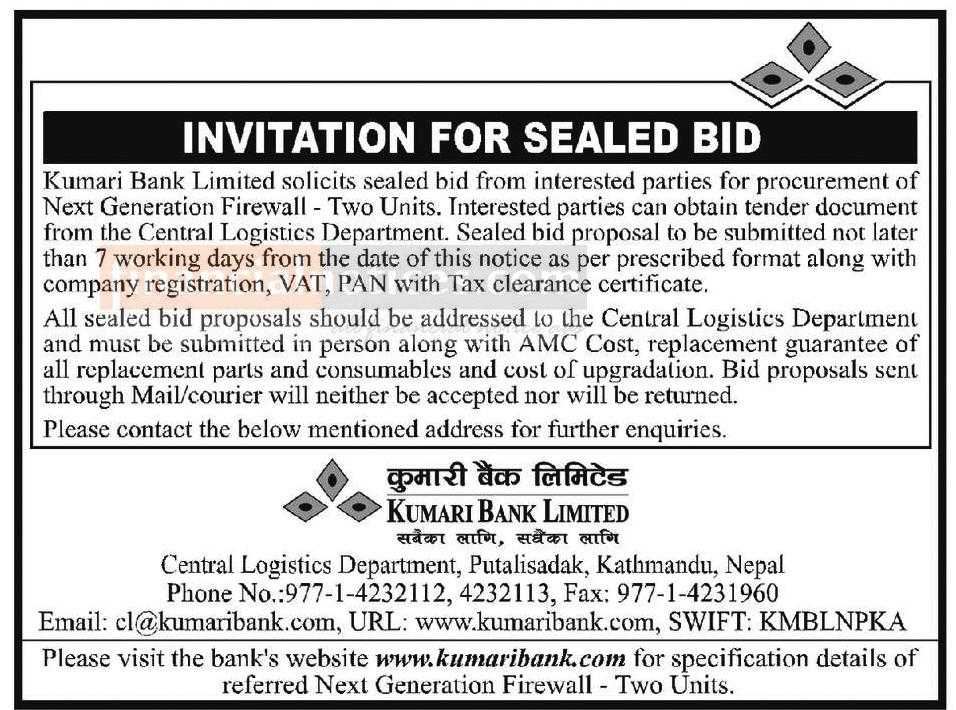 Published by Kumari Bank Ltd (KBL) Kantipur Newspaper on 2075-5-18