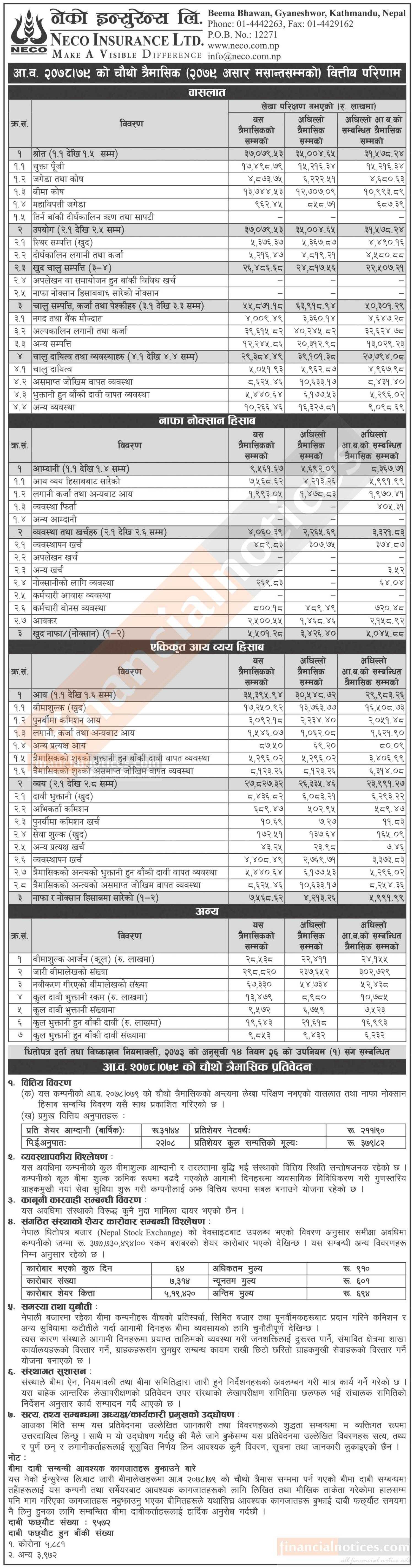 नेको इन्स्योरेन्सको खुद नाफा ५५ करोड १ लाख रुपैयाँ - Q4 Report -