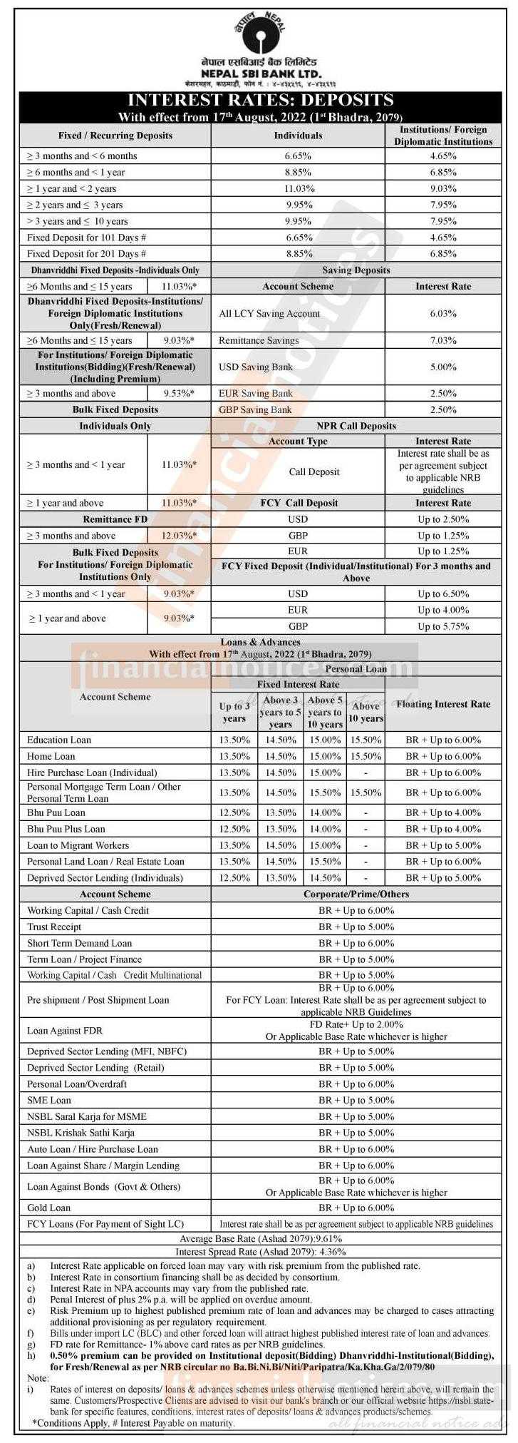 नेपाल एसबिआई बैंकको ब्याजदर परिवर्तनबारे सूचना