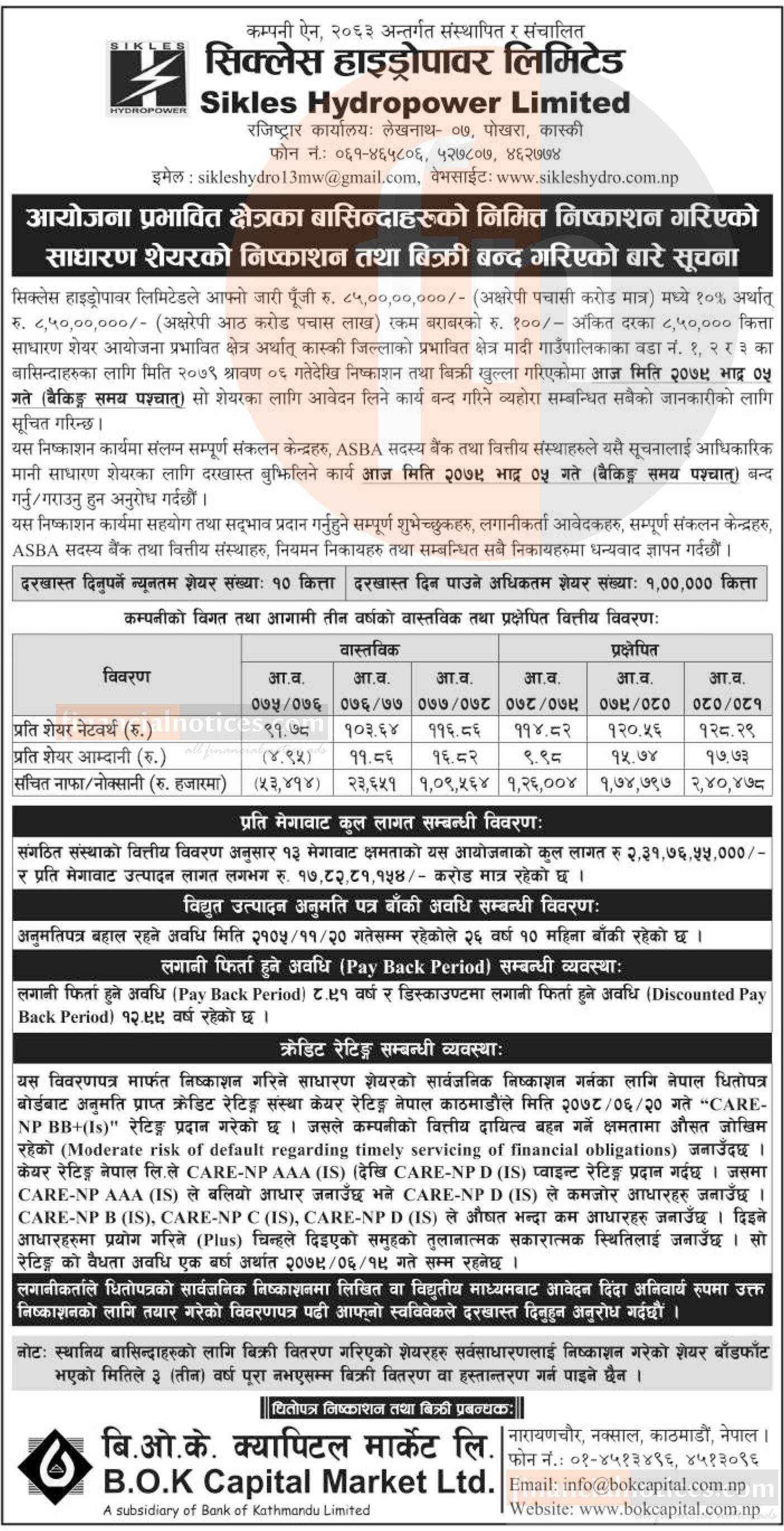 सिक्लेस हाइड्रोपावरको आईपीओमा आवेदन दिने आज अन्तिम दिनबारे सूचना