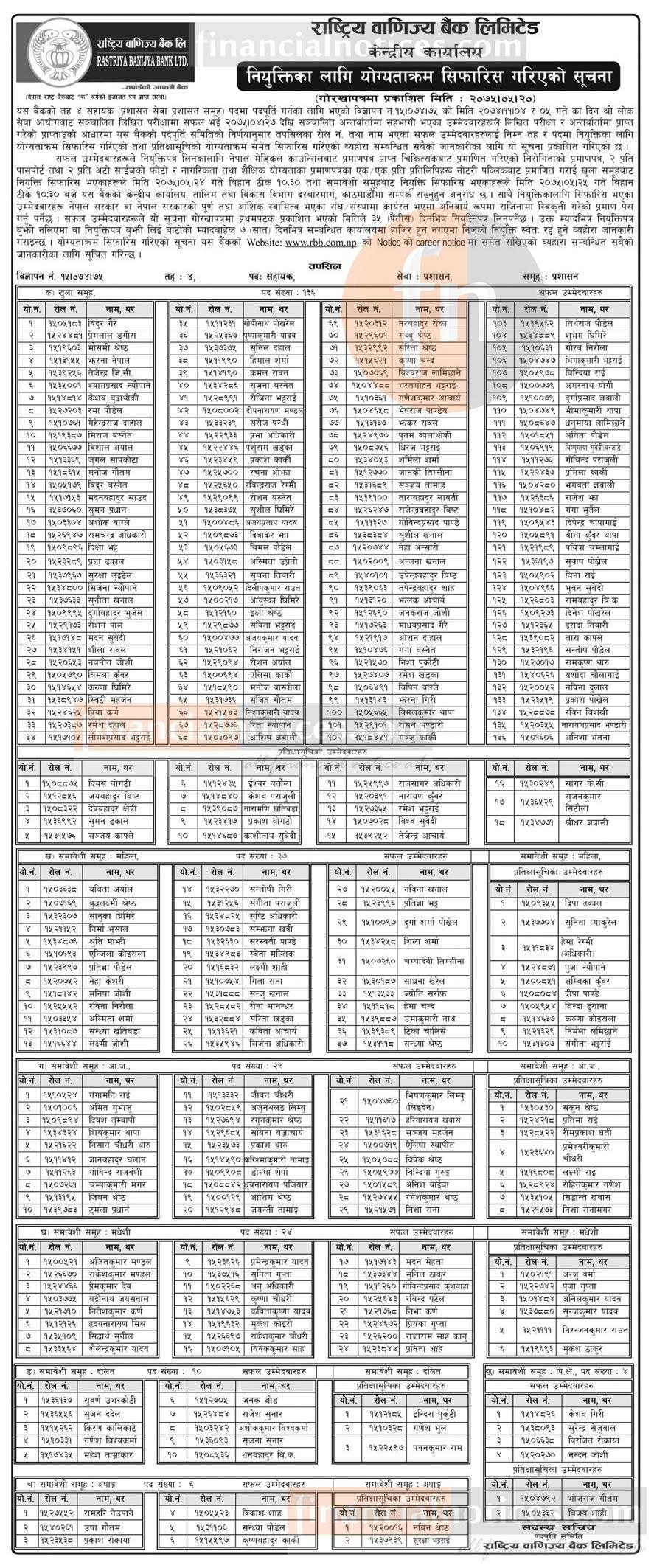 नियुत्तिका लागि योग्यताक्रम सिफारिस गरिएको सूचना