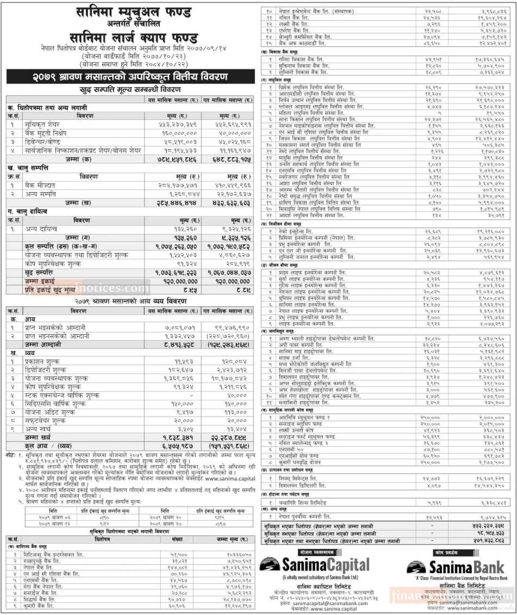 Sanima Capital has published 'Sanima Large Cap Fund' Net Asset Value up to Shrawan, 2079