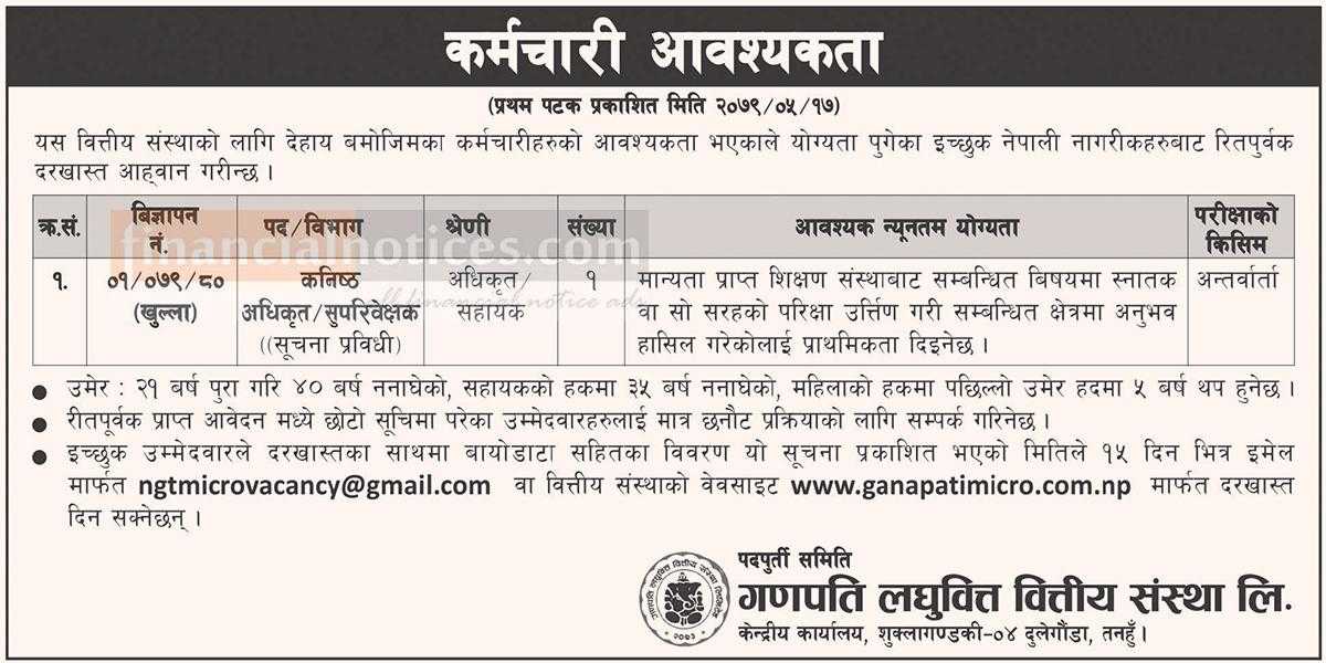 Swarojgar Laghubitta Announces Vacancy for Multiple Positions
