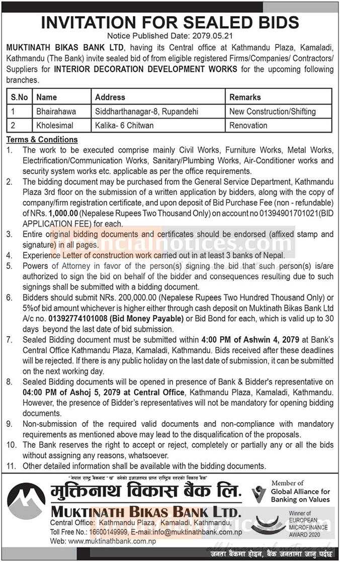 Kumari Bank Auction Notice for Non-Banking Assets at Mahendranagar, Kanchanpur -