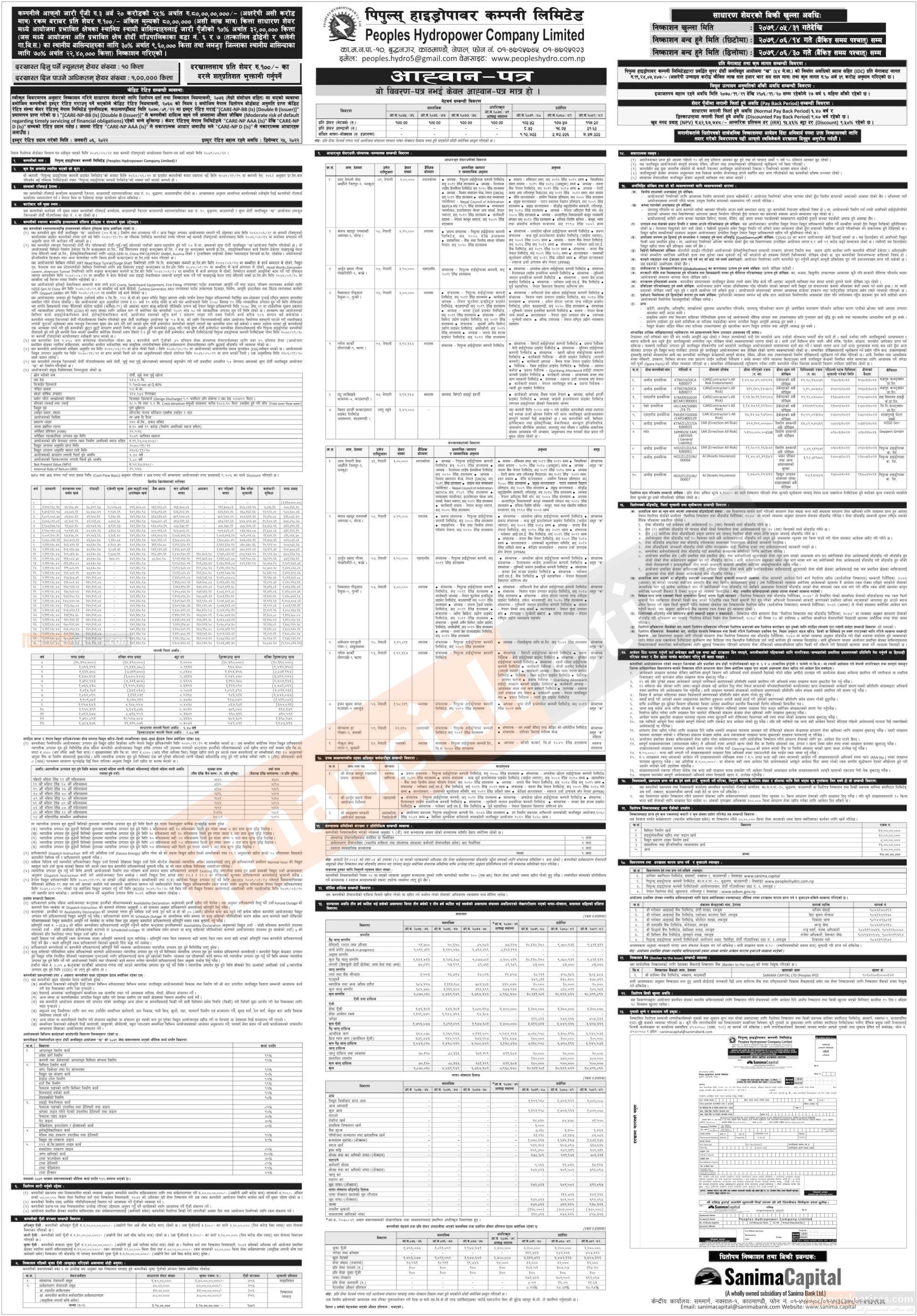 पिपुल्स हाइड्रोपावरले भदौ ३१ गतेदेखि आईपीओ निष्काशन गर्नेबारे सूचना