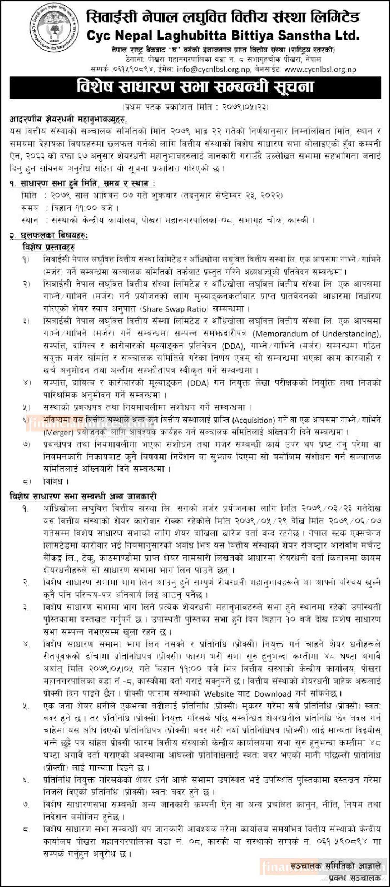 सिवाईसी नेपाल लघुवित्तको बिशेष साधारण सभाबारे सूचना
