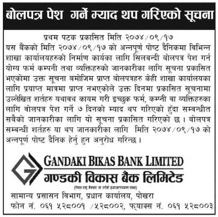 Published by Gandaki Bikas Bank Annapurna Post on 2074-10-03
