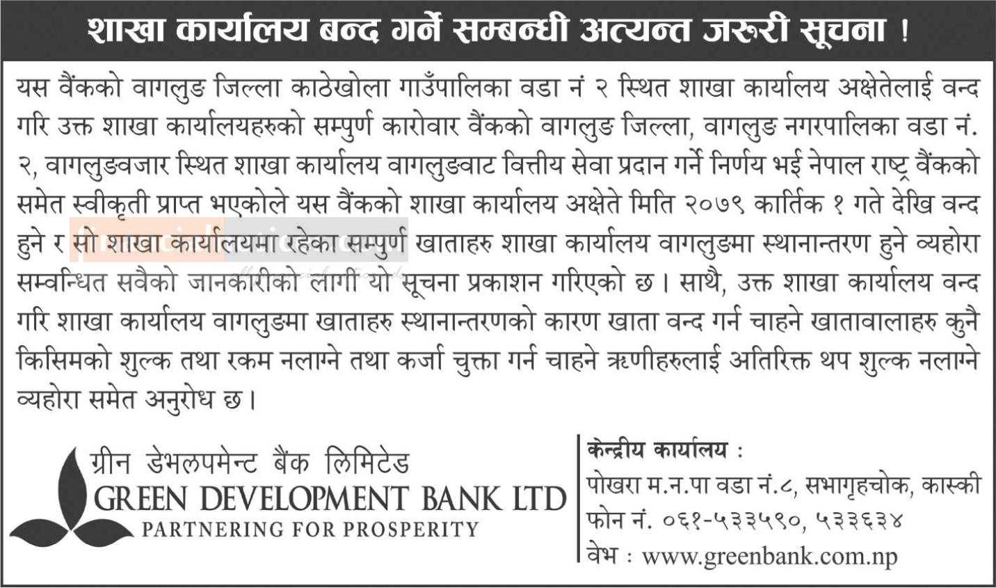 बैंकले शाखा कार्यालय बन्द गर्ने सम्बन्धी सूचना