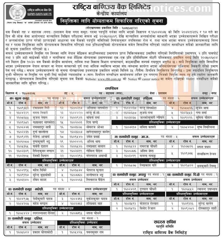 नियुत्तिका लागि योग्यताक्रम सिफारिस गरिएको सूचना