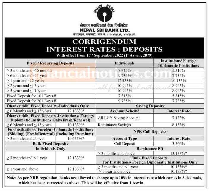 नेपाल एसबिआई बैंकको नयाँ ब्याजदर परिवर्तनबारे सूचना