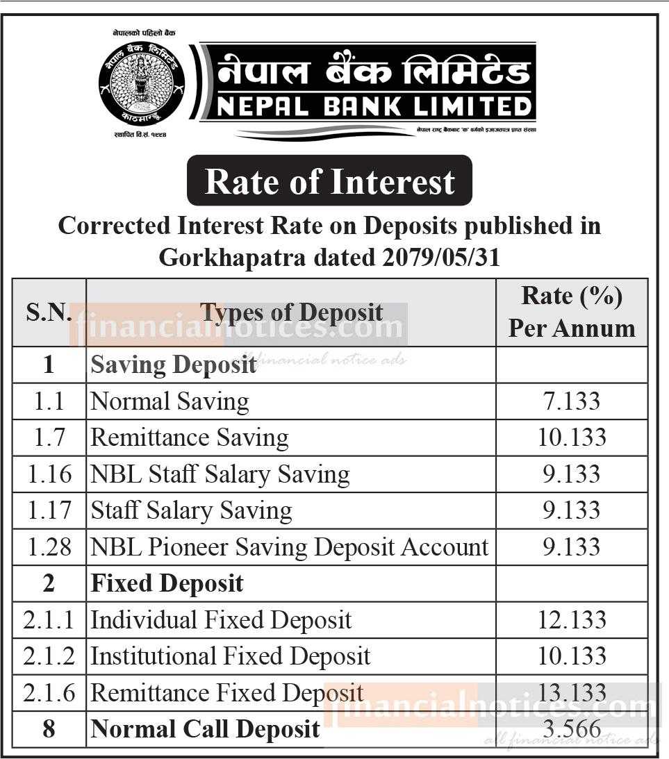 हेर्नुहोस् नेपाल बैंकले कुन कुन खातामा पुन परिवर्तन गर्यो ब्याजको दर