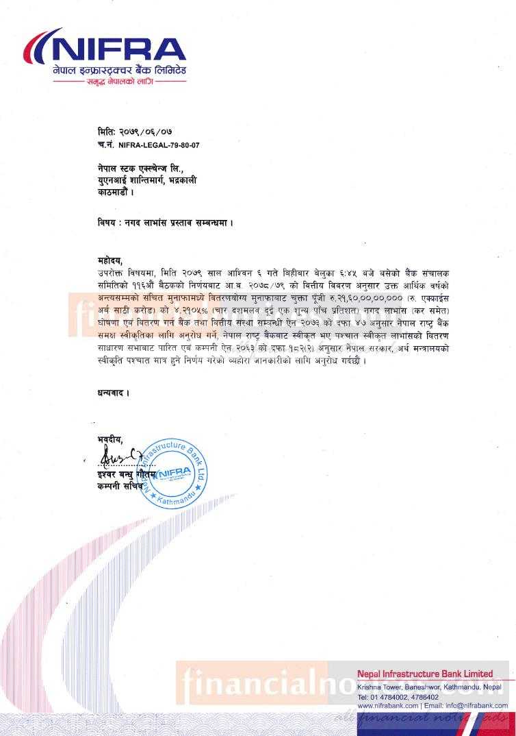 निफ्राको लाभांश घोषणा बारे सूचना