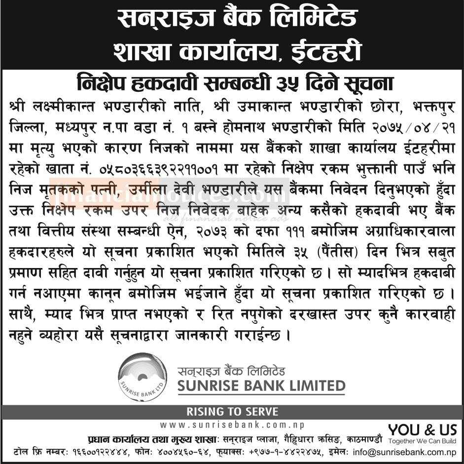 Published by Sunrise Bank Limited Annapurna Post on 2075-5-26