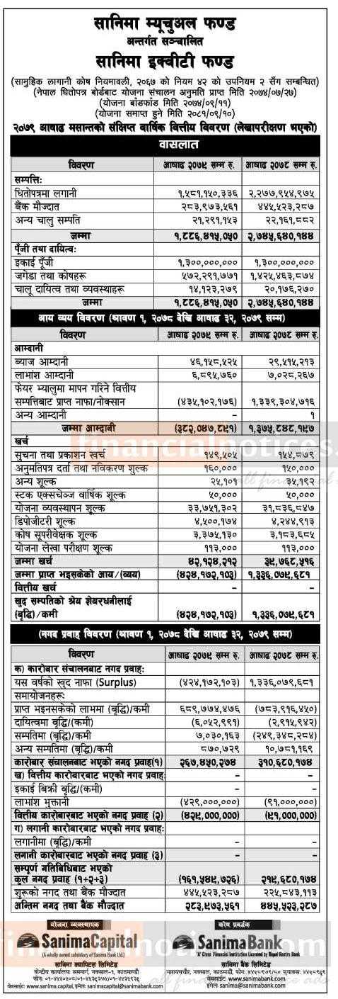 Sanima Capital has published its audited financial highlights of Sanima Equity Fund.