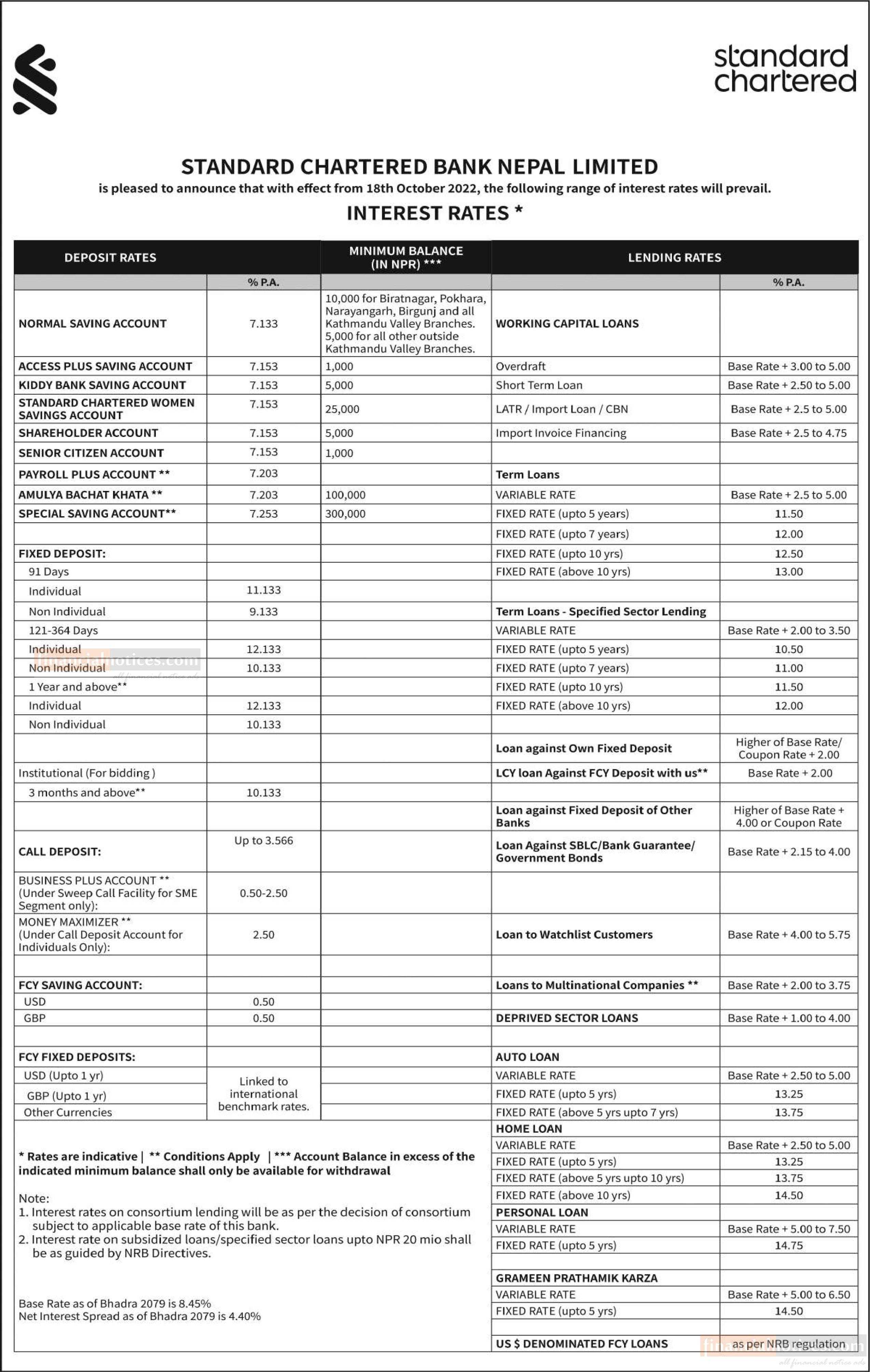स्ट्याण्डर्ड चार्टर्ड बैंकको नयाँ ब्याजदर सार्वजानिक, हेर्नुहोस् कुन खातामा कति पुग्यो