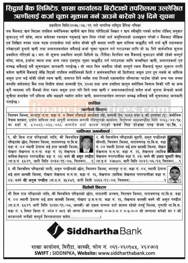 Published by Siddhartha Bank Nagarik Newspaper on 2075-5-29
