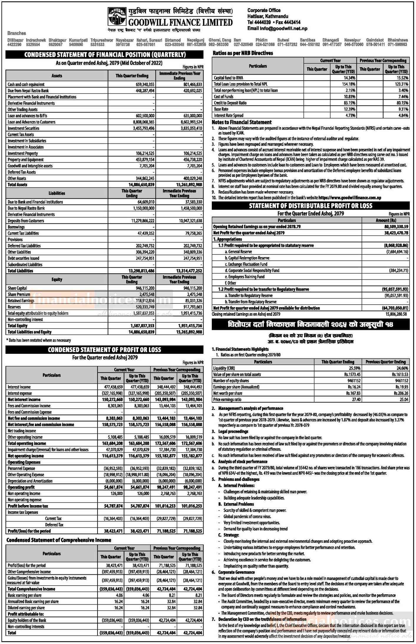 गुडविल फाइनान्सको खुद नाफा ३ करोड ८४ लाख रुपैयाँ