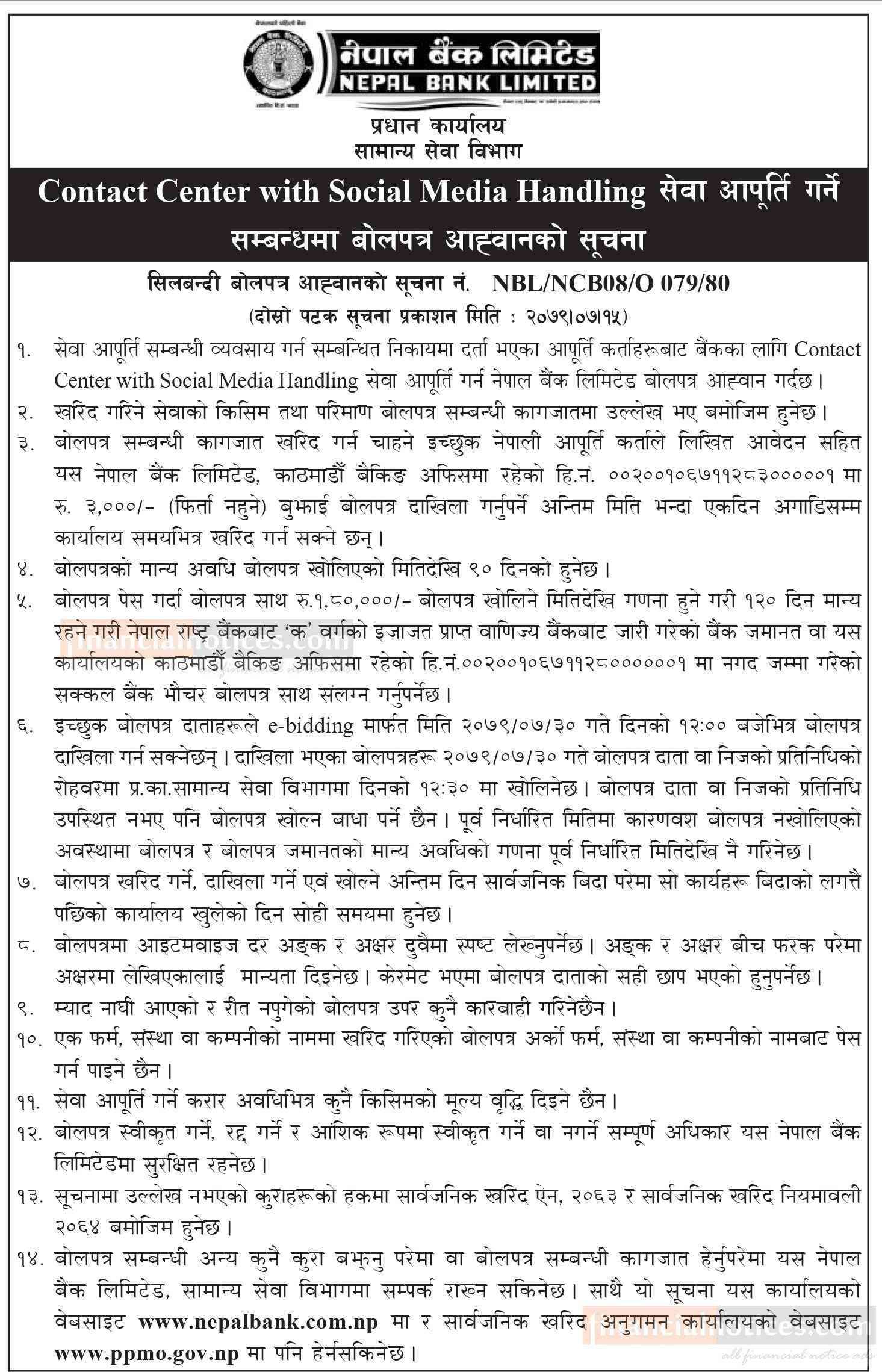 Contact Center with Social Media Handling सेवा आपूर्ति गर्ने सम्बन्धमा बोलपत्र आह्वानको सूचना