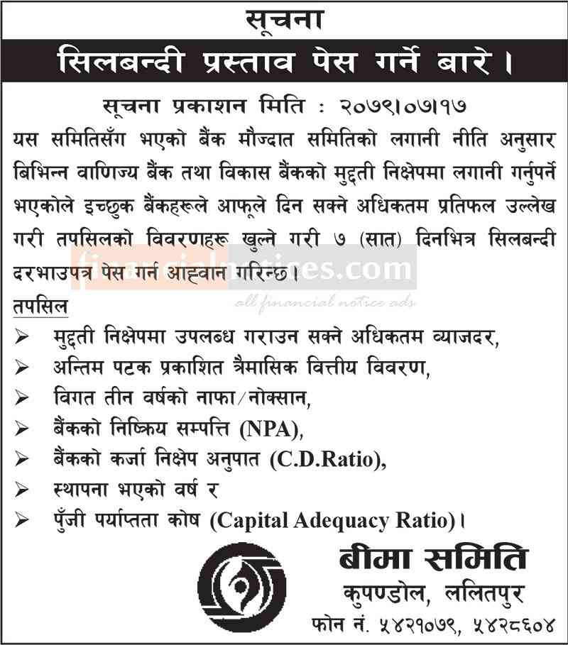 शिलबन्दी प्रस्ताव पेश गर्ने बारे सूचना