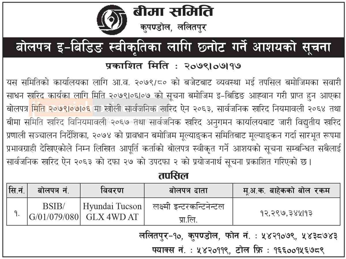 बोलपत्र ई–बिडिङ स्वीकृतिका लागि छनोट गर्ने आशयको सूचना