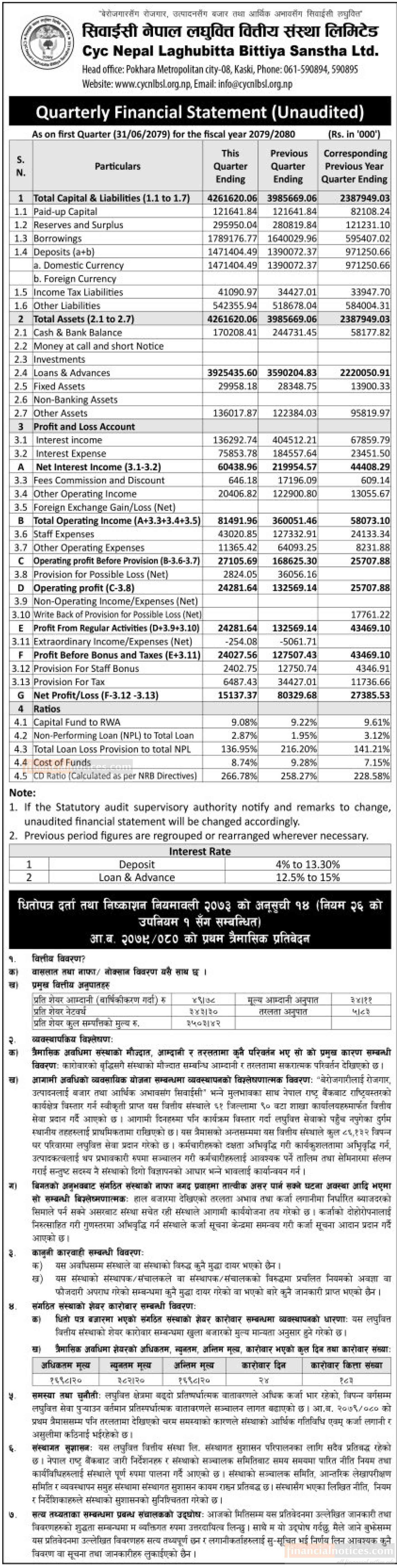 सिवाईसी नेपाल लघुवित्तको खुद नाफा १ करोड ५१ लाख रुपैयाँ